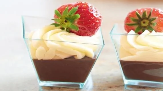 ШАГ 1 Для темной части растопите мелко нарезанный шоколад с маслом и сливками (300 мл). Добавьте маскарпоне, перемешайте. Залейте в прозрачные (например, одноразовые) стаканчики и поставьте в холодильник на 30 минут.