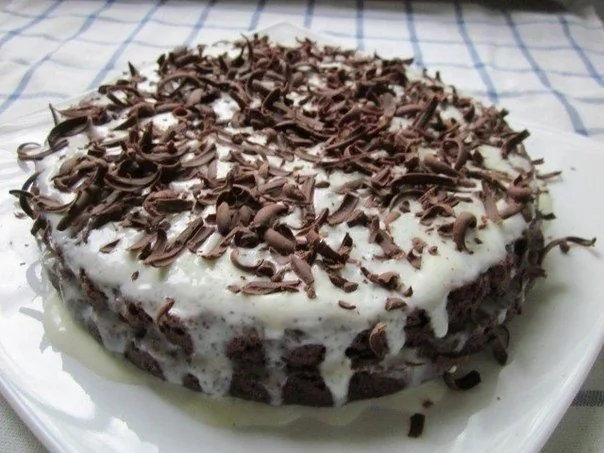 ШАГ 7 Торт лучше поставить на 2 часа в холодильник, чтобы он хорошо пропитался и стал нежным.