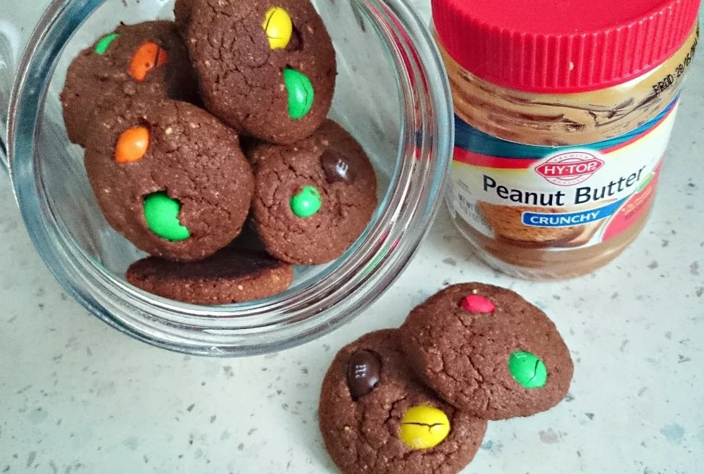 Ингредиенты для приготовления Шоколадно-арахисовое печенье с разноцветным драже: