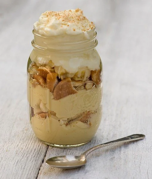 ШАГ 3 Кладем еще пару печенек и кружочков банана и вливаем оставшийся пудинг. В зависимости от формочки можно сделать несколько слоев чередуя печенье-банан-пудинг. Украшаем (часто в этих целях используют взбитые сливки).