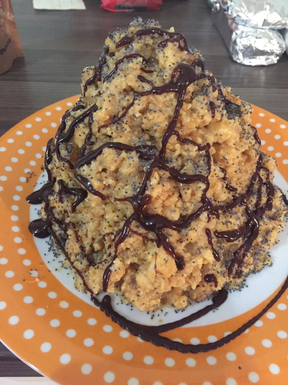 ШАГ 5 На плоскую тарелку руками выложить торт в форме пирамидки. Сверху посыпать маком. Убрать торт в холодильник на несколько часов перед подачей.