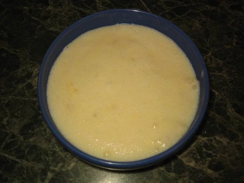 ШАГ 2 В кастрюлю налить молоко, добавить яйца, муку, сахар. Поставить на огонь и хорошенько мешать. Варим пока не загустеет и не начнет кипеть.