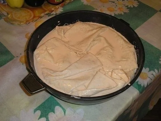 ШАГ 1 Лаваши выкладываем в смазанную маслом форму так, чтобы края свисали.