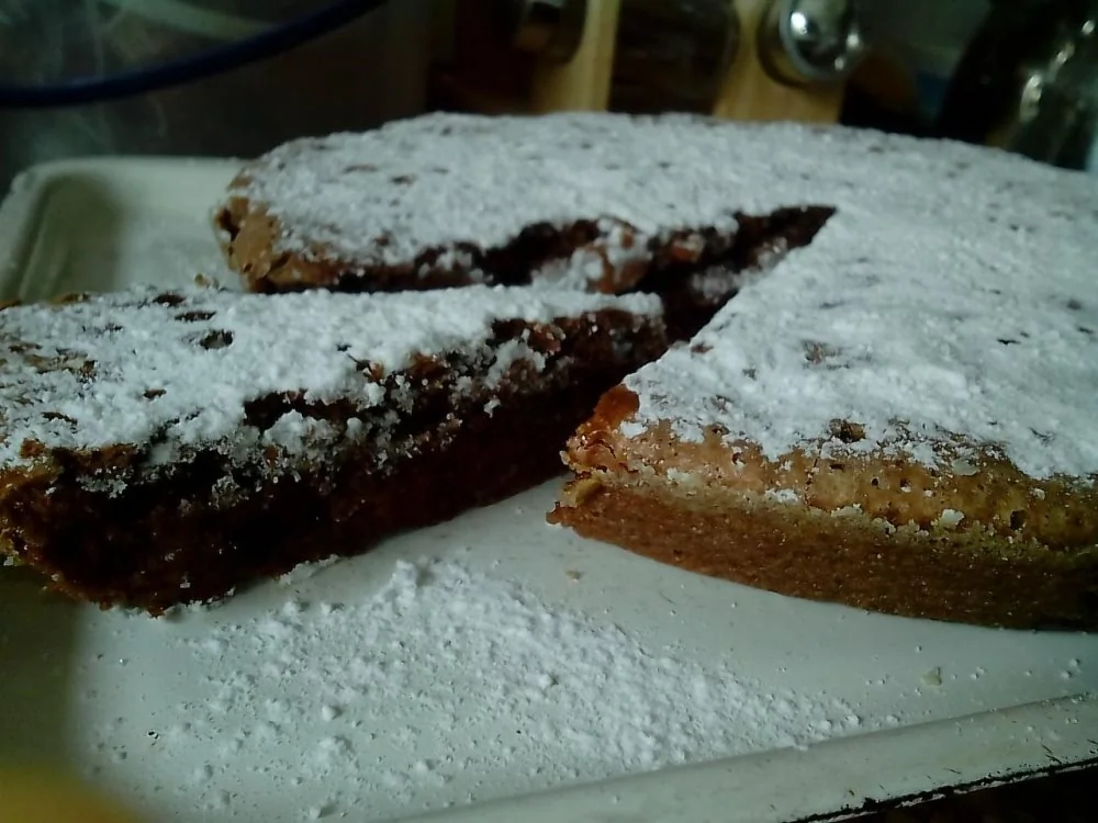 ШАГ 8 Достать пирог из духовки, перевернуть на блюдо и посыпать сверху сахарной пудрой. Приятного аппетита!