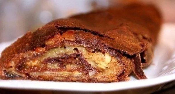 ШАГ 8 Готовый шоколадный штрудель посыпать сахарной пудрой и нарезать на кусочки.
