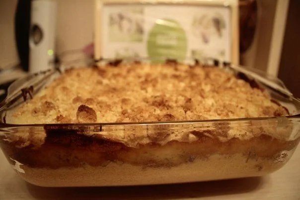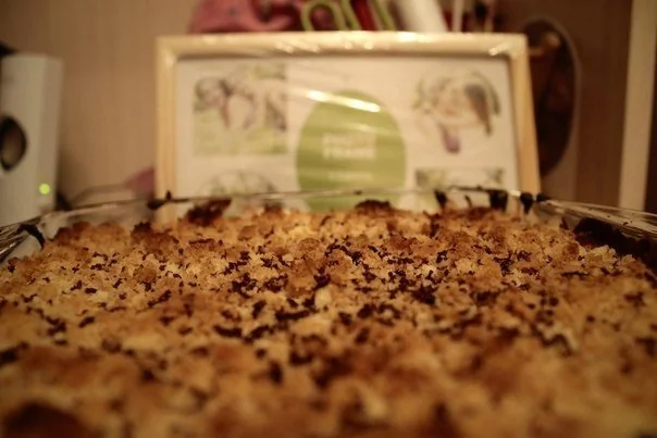 ШАГ 5 Разламываем оставшиеся 4 штуки печенья над заварным кремом, распределяем равномерно и ставим запекать в духовку. Выпекать примерно минут 30, перед подачей можно посыпать шоколадной стружкой.