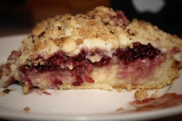 ШАГ 2 Достаем ежевику, размораживаем ее, далее промываем под холодной водой, немного отжимаем, чтоб она не выделяла слишком много сока, и выкладываем на наше тесто.