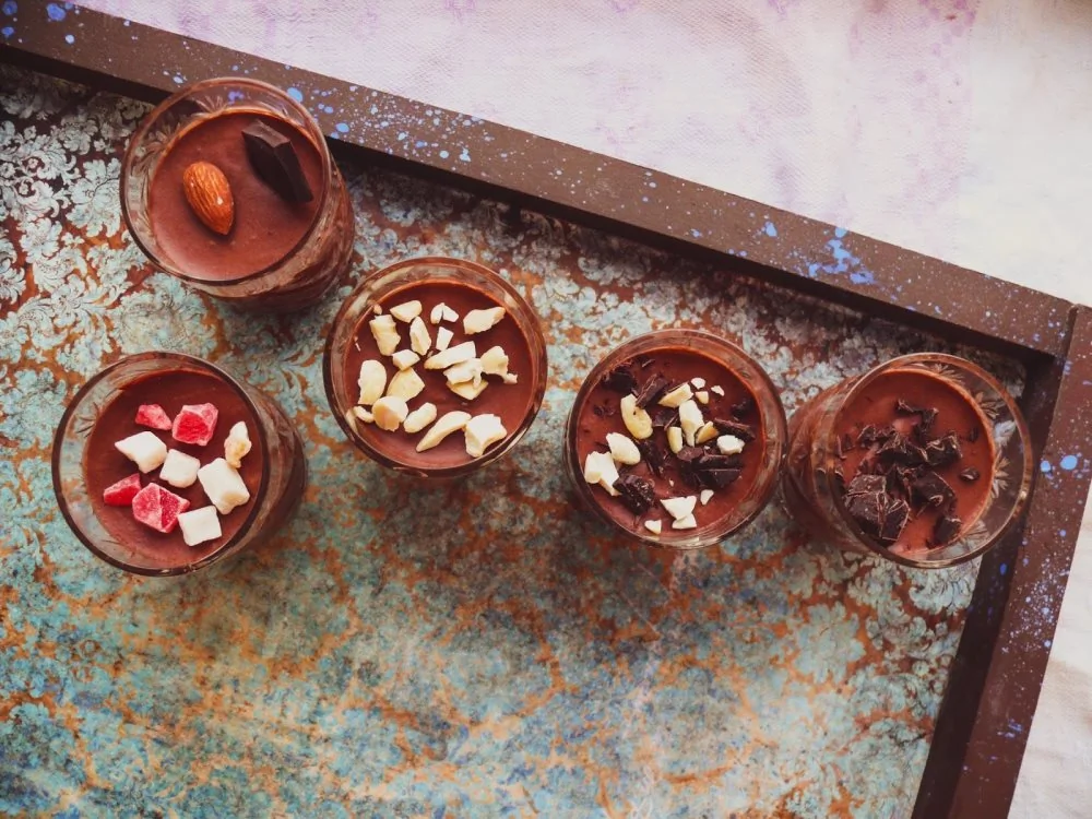 ШАГ 7 Разлейте мусс по формочкам и обязательно накройте каждую пленкой или фольгой. Тем самым мы предотвращаем появление неприятной корки. Сначала цвет мусса будет светлее, чем на фото, но пусть вас это не обманывает, в холодильнике масса хорошо потемнеет.