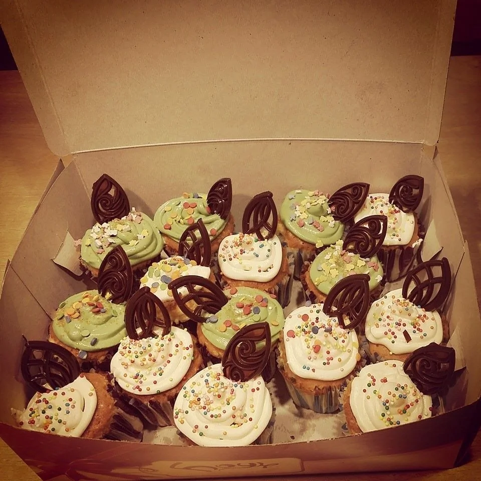 ШАГ 6 Вкладываем в формочки бумажные стаканчики для кексов, наполняем тестом чуть более, чем наполовину, и ставим в горячую духовку (175 С) на 30 минут. Даем остыть и можно заниматься кремом или глазурью.