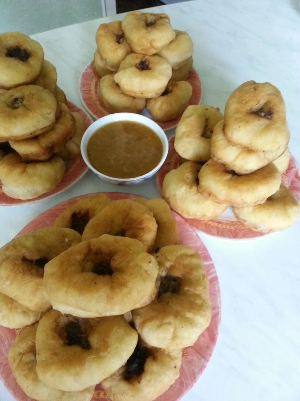 ШАГ 4 Готовое тесто разделить на шарики, размером с маленькое яблочко, шарики раскатать в лепешку, на лепешку положить фарш по 1-2 столовой ложки, края защипить как открытый пирожок.