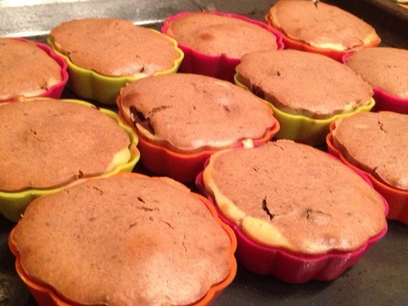 ШАГ 9 Как вариант, часть маффинов можно сделать шоколадными - т.е. в готовое тесто добавить какао. Можно также первый слой делать из белого теста, а верхний - из шоколадного. Все на Ваш вкус.