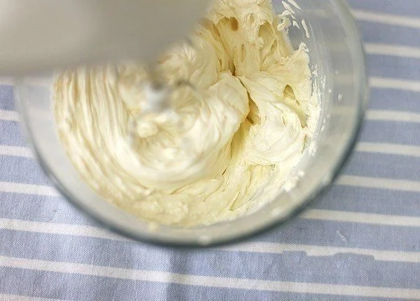 ШАГ 3 Творог протереть через сито в готовый крем. Взбить.