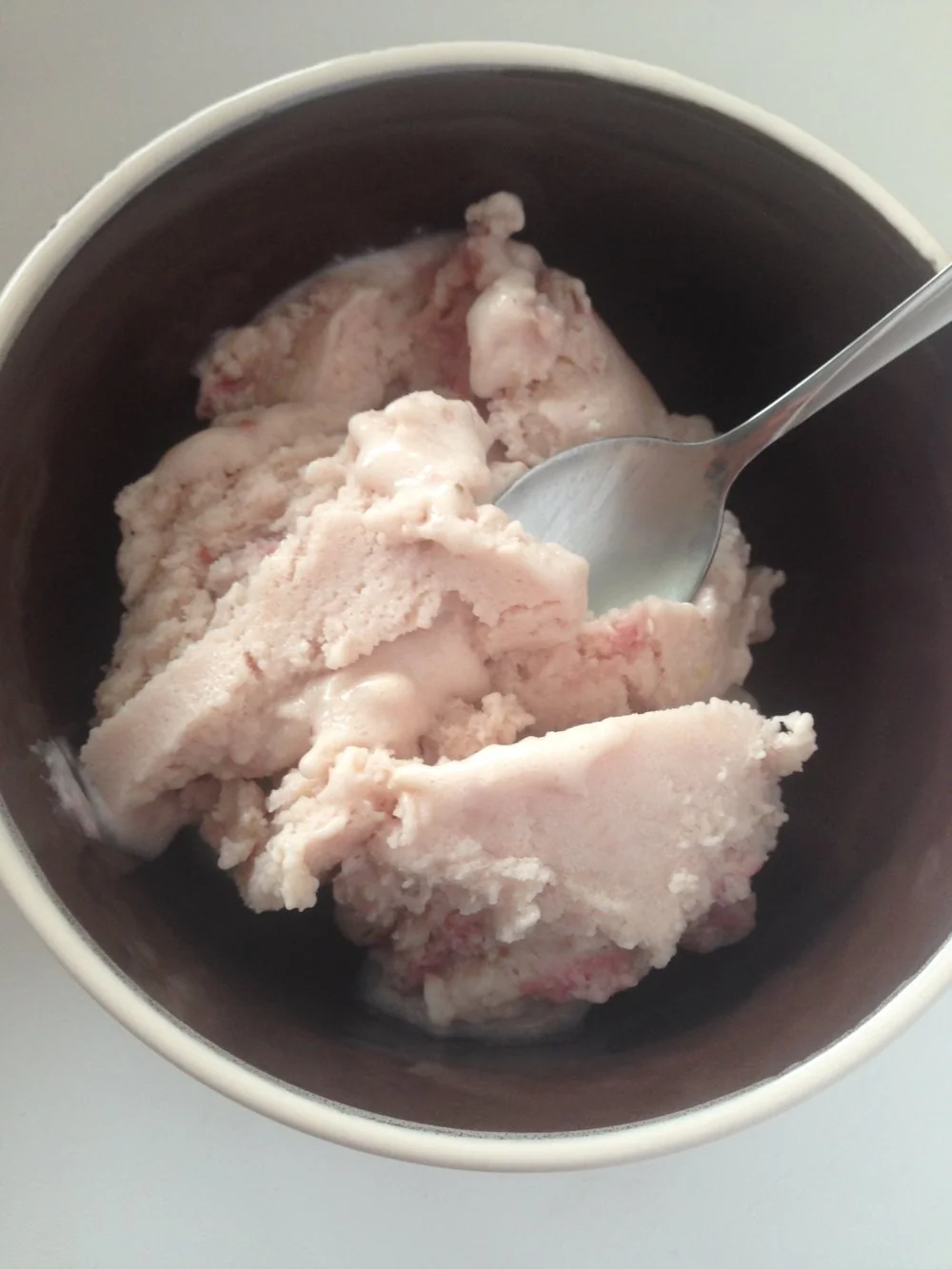 ШАГ 4 Молочный крем перелить во фризер, оставить на 20 минут, затем подмешать клубнику, оставить еще на полчаса и отправить на 1-1,5 в холодильник