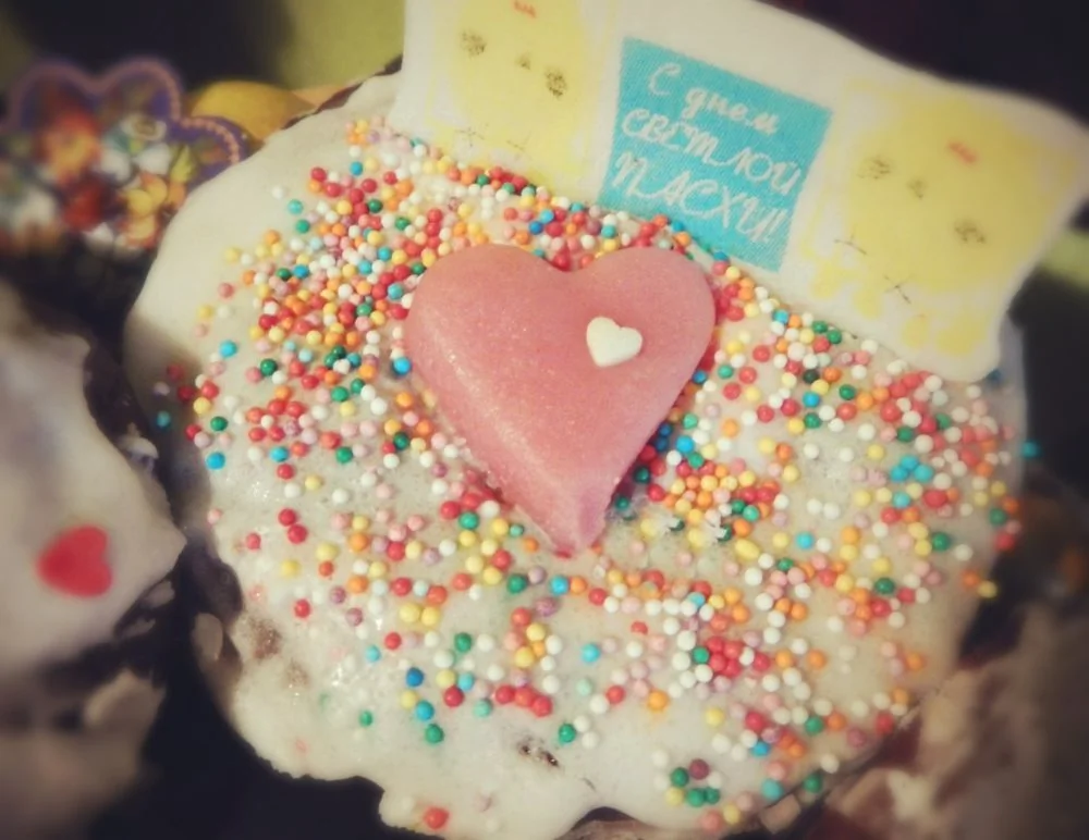 ШАГ 15 Остывшие куличи покрываем глазурью. Когда глазурь затвердеет, украшаем куличи марципановыми фигурками и кондитерской посыпкой!