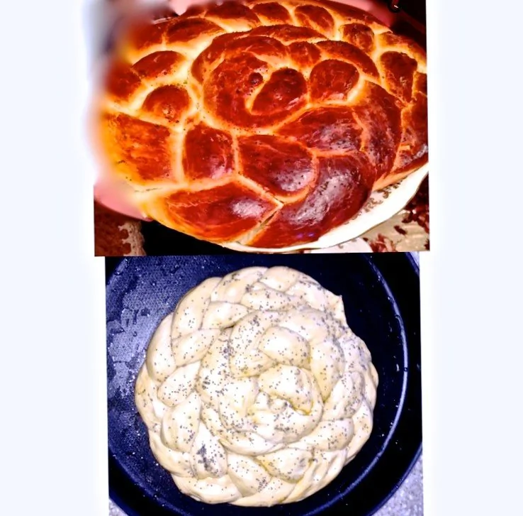 ШАГ 7 Затем начните делать длинные колбаски из каждого шара, после того как вы сделали подходящие вам размеры, заплетите косичку и положите на противень, заворачивая косичку как пирог, по форме вашей посуды