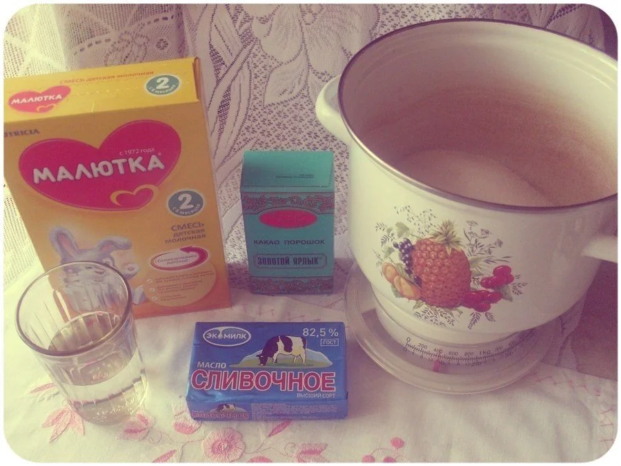 ШАГ 1 Смешать вместе воду, сливочное масло и сахарный песок, размешать, прокипятить в кастрюле 4–5 минут и остудить. 1 пачку детской сухой смеси (целую) смешать с 2/3 пачки какао (остаток какао пойдет на обсыпку), добавить в остуженную массу и тщательно перемешать.