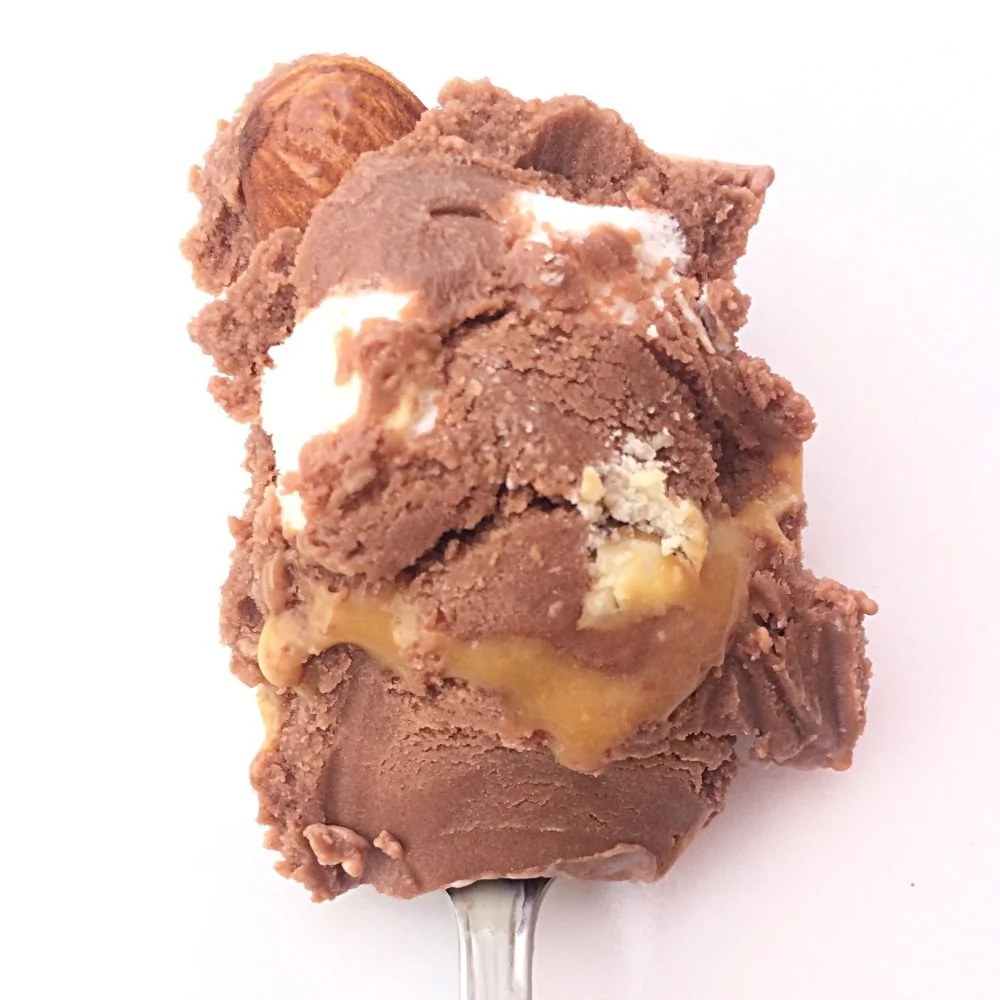 Шоколадное мороженое с маршмэллоу, миндалем и карамельной прослойкой