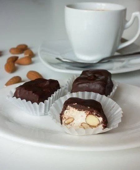 Ингредиенты для приготовления Нуга с миндалем в шоколаде: