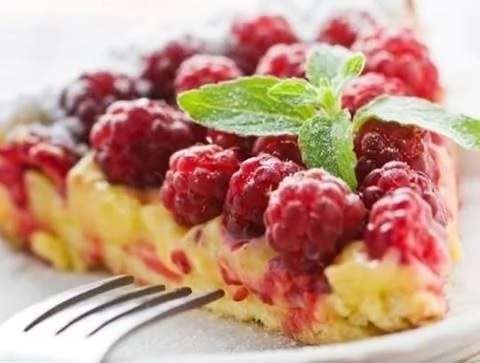ШАГ 6 Готовую запеканку украсить свежей малиной и веточками мяты.