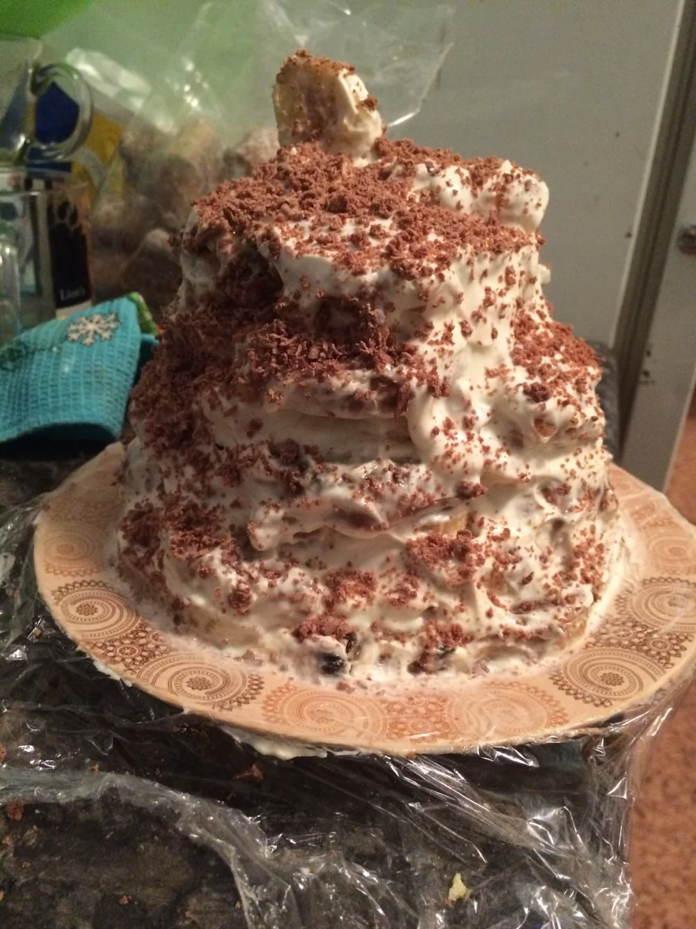 ШАГ 11 При подаче пряничный торт с бананами можно украсить тертым шоколадом, какао или полить черным растопленным шоколадом и посыпать кокосовой стружкой.