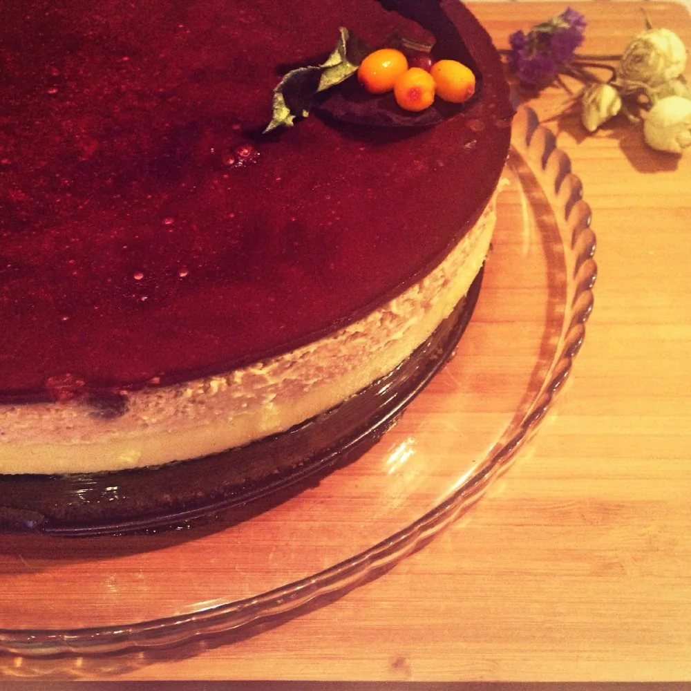ШАГ 18 Залить поверх застывшего мусса до полного распределения массы по поверхности торта.