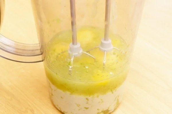 ШАГ 1 Цедру трёх лаймов, сок всех пяти лаймов, 2 желтка и сгущённое молоко взбить блендером с насадкой-миксером.