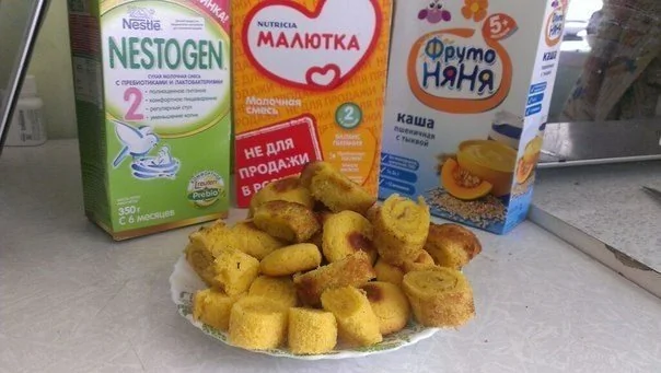 ШАГ 1 Смешать вместе все ингредиенты. Добавить столько каши для детского питания, чтобы тесто можно было вымесить ложкой.