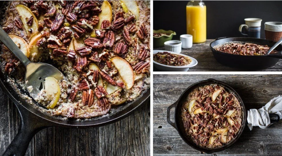 Пудинг из киноа с пеканом, яблоком и ревенем