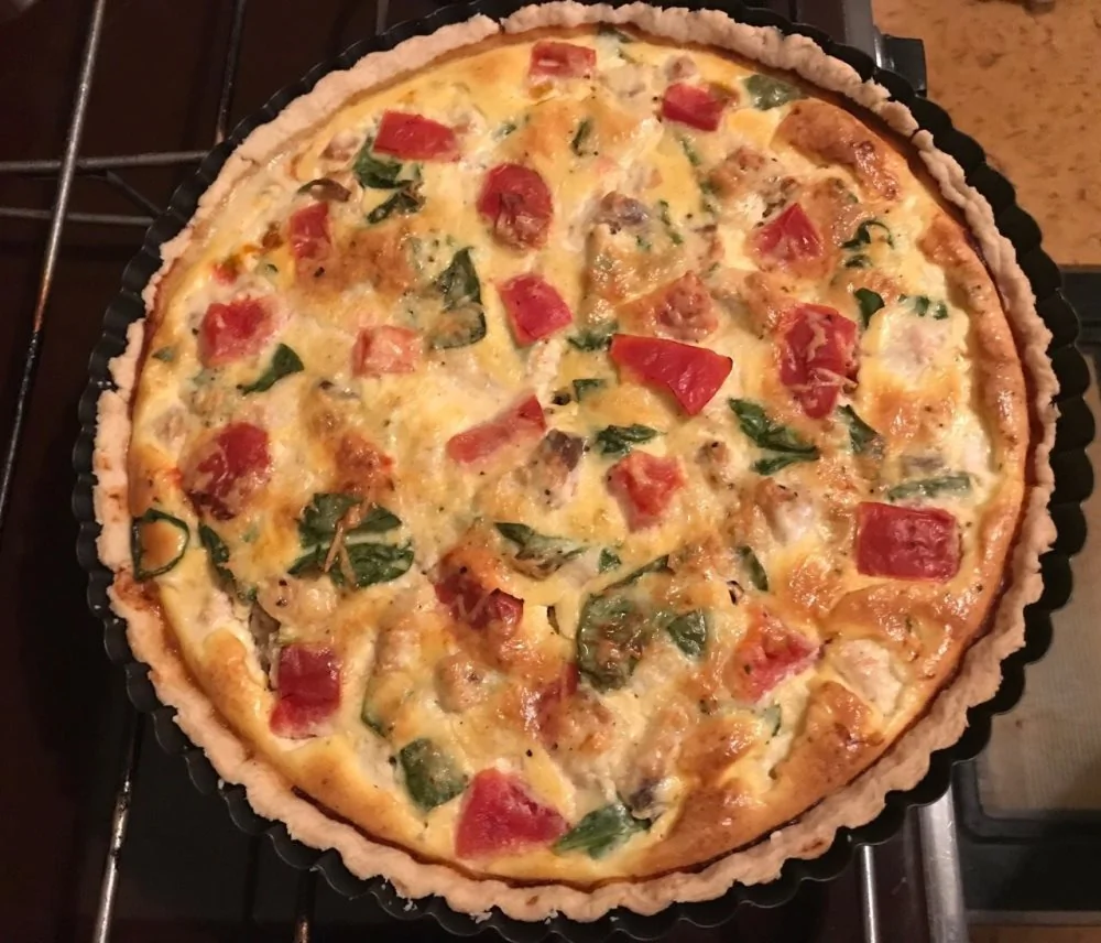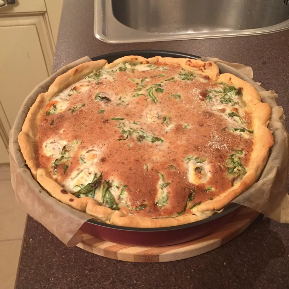 Лоранский пирог с лососем, рикоттой и шпинатом