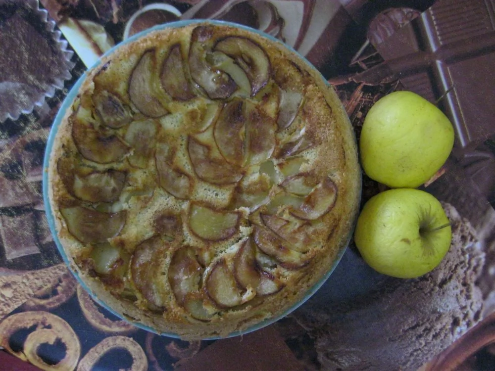 ШАГ 7 Во время выпечки дверцу духовки не открывать, чтобы шарлотка не опала. Пирог готов, когда сверху появилась светло-коричневая корочка.