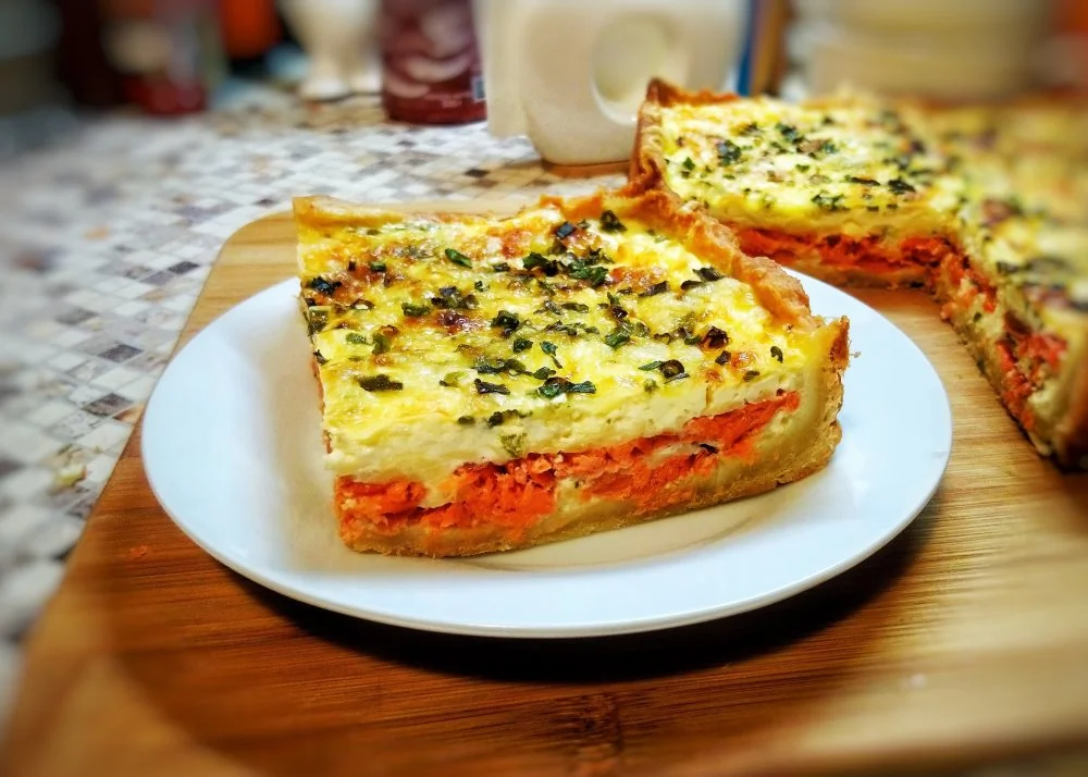 Ингредиенты для приготовления Киш лорен с слабосоленым лососем:
