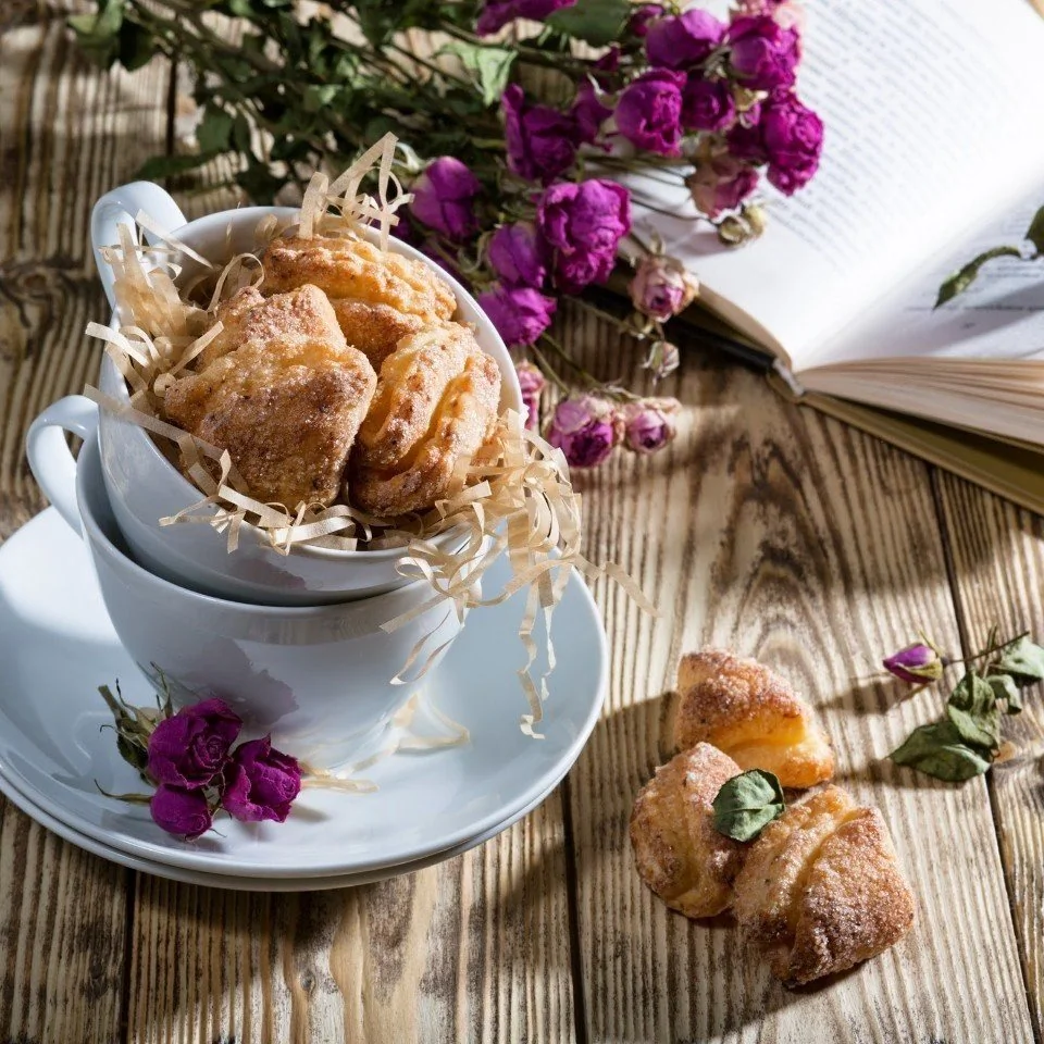 ШАГ 3 Каждый кружок одной стороной обмакнуть в сахар и сложить пополам сахаром внутрь.