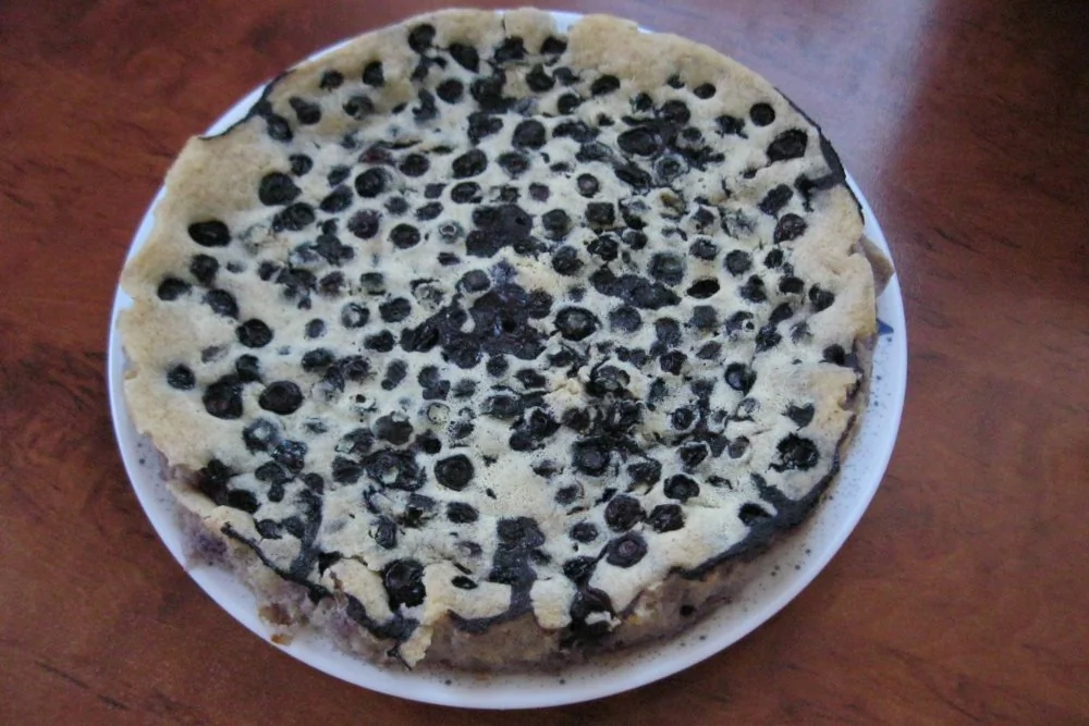 ШАГ 5 Достать форму из духовки, залить ягоды тестом и поставить печься 25-30 минут.