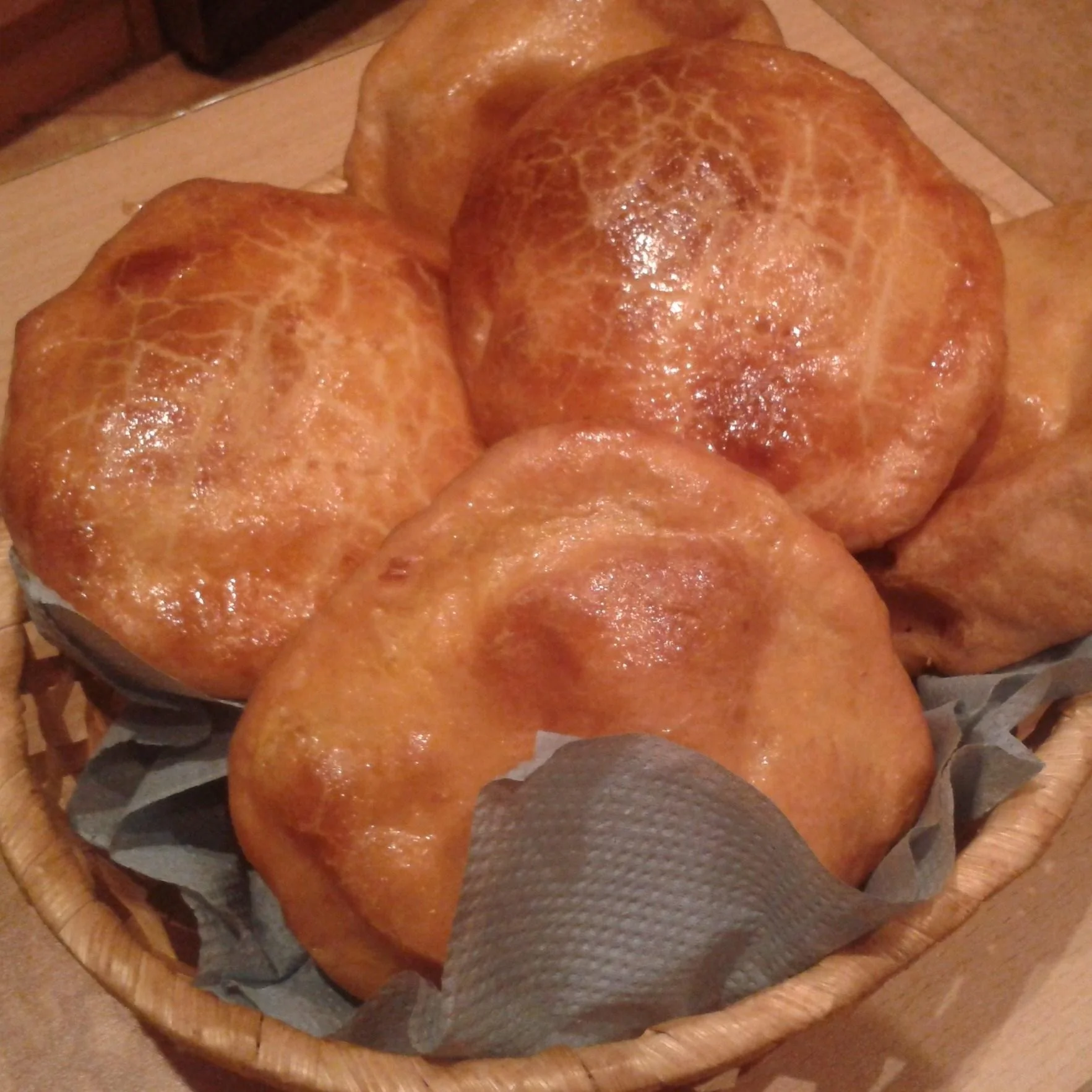 ШАГ 3 Тесто разделить на 8 частей и раскатать в виде круглых лепешек. На нижнюю лепешку выложить начинку, края верхней лепешки загнуть под нижнюю. Верх смазать яйцом и проколоть в нескольких местах вилкой. Выпекать 45 минут в духовке при температуре 200 градусов.