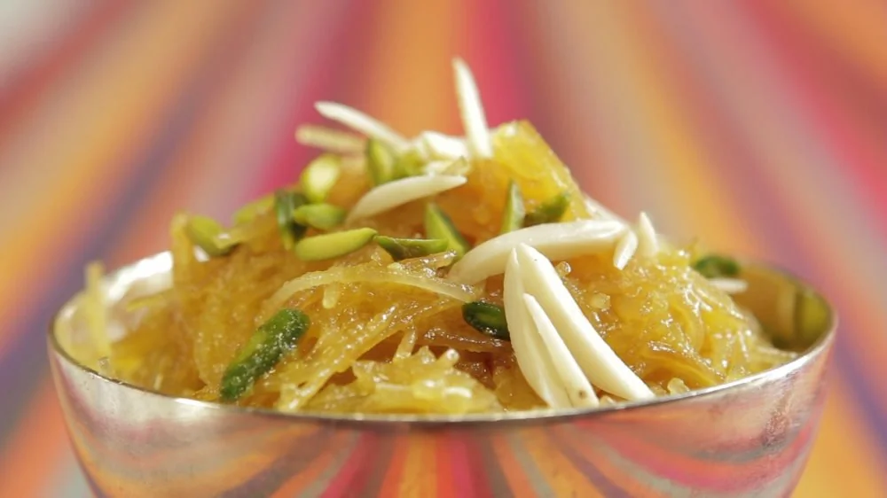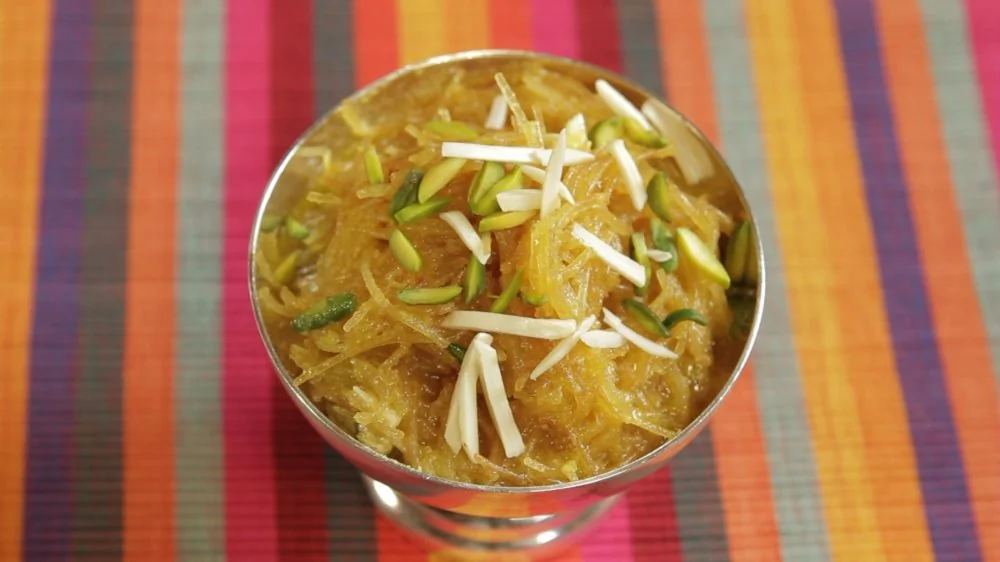 ШАГ 3 Как только цвет вермишели изменится, влить сахарный сироп. Варить на медленном огне 15 минут до