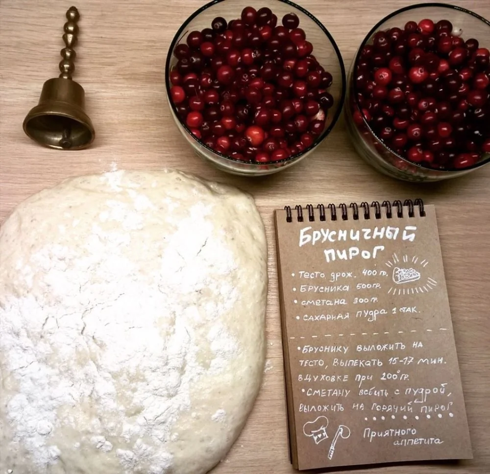 Пирог из готового дрожжевого теста с брусникой и сметаной