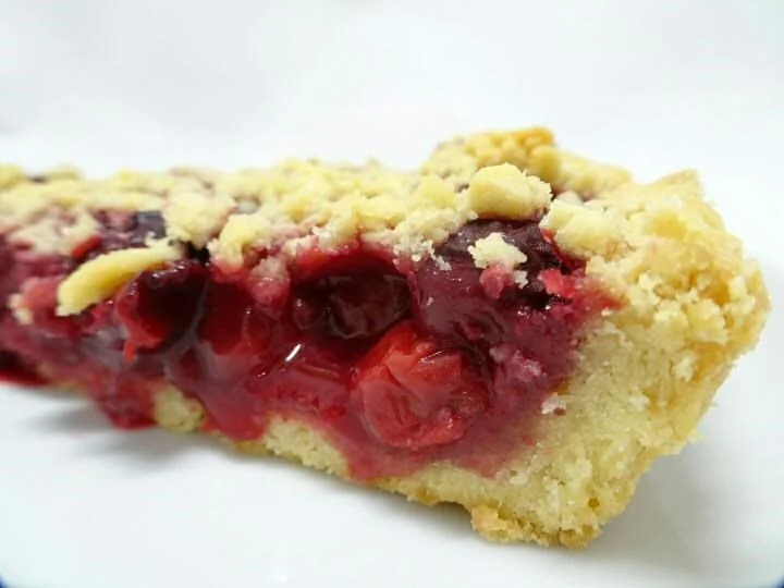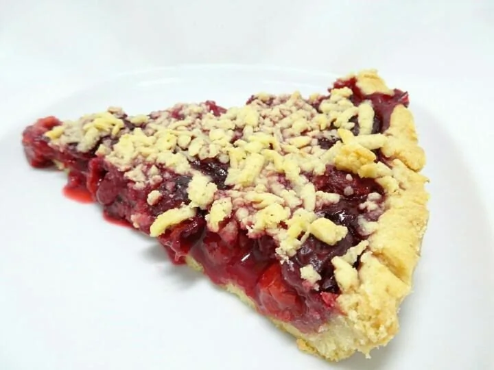 ШАГ 3 Добавить ягодную начинку (например, 800 грамм вишни, смешанной с 4 столовыми ложками сахара и 4 столовыми ложками муки). Тесто из морозильной камеры натереть на терке, обсыпать им сверху пирог.