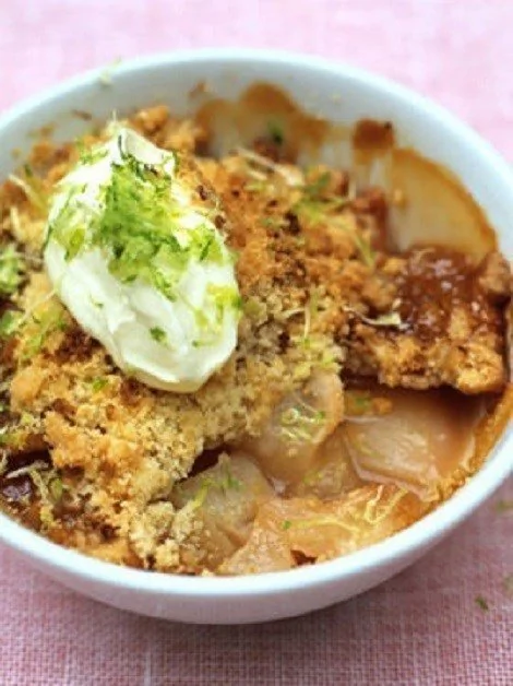ШАГ 11 Запекать в предварительно разогретой духовке в течение 25-30 минут, пока груши не будут приготовлены, а крошка позолотится сверху.