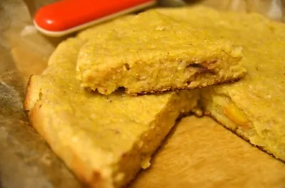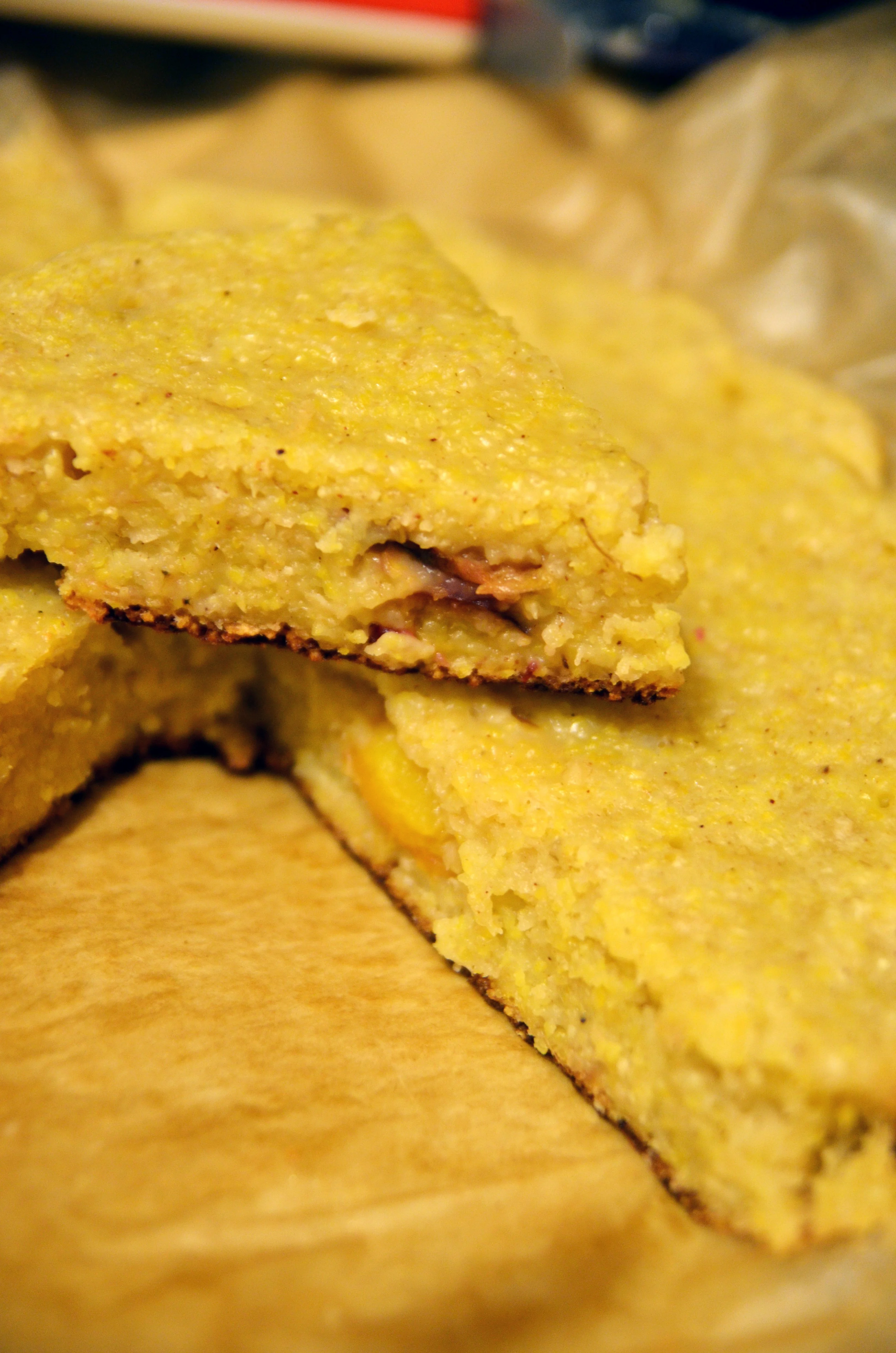 Ингредиенты для приготовления Пирог из кукурузной крупы с бананом и персиком: