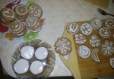 ШАГ 4 Взять кондитерский мешок (или отрезать кончик у целлофанового пакета), поместить туда глазурь и украшать пряники.