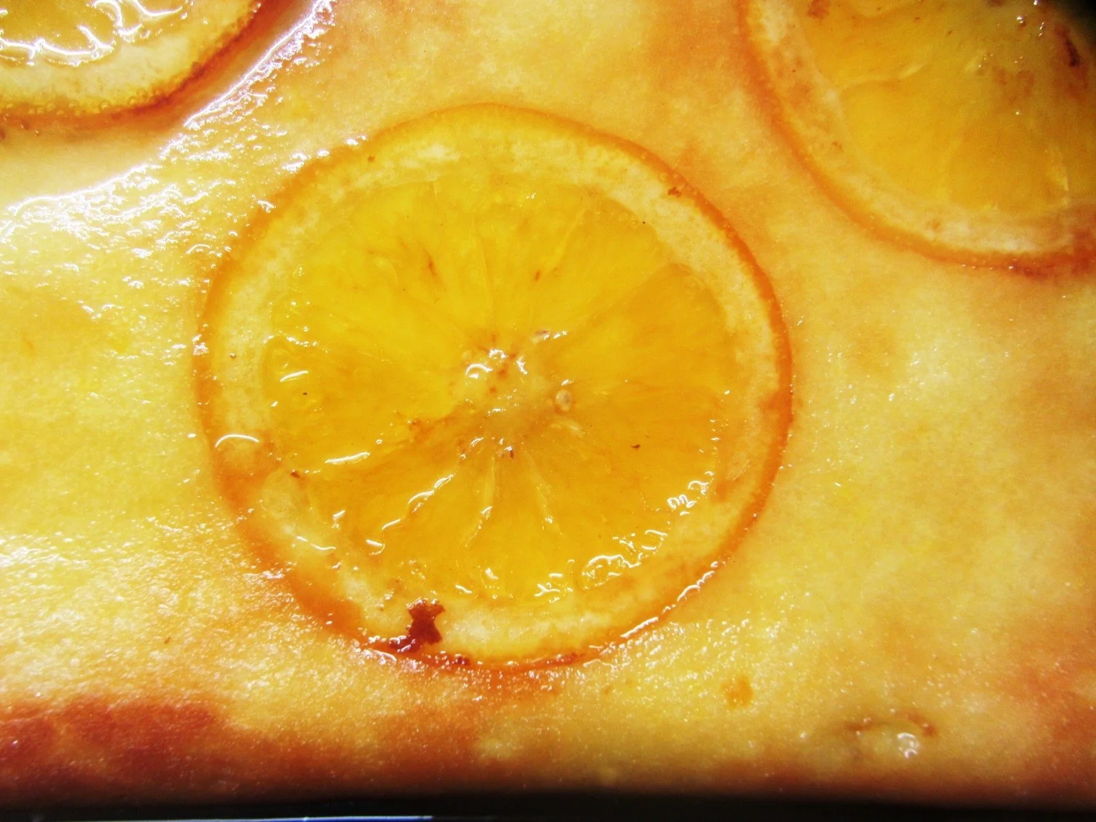 ШАГ 8 Когда пирог приготовится его нужно перевернуть, чтобы апельсины оказались наверху и полить его сверху апельсиновой карамелью (можно полить со всех сторон, чтобы пирог ещё больше пропитался).