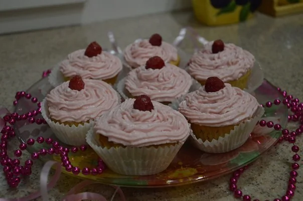 ШАГ 5 Украшаем остывшие капкейки кремом с помощью кондитерского шприца, сверху можно положить ягоду малины. Приятного аппетита!