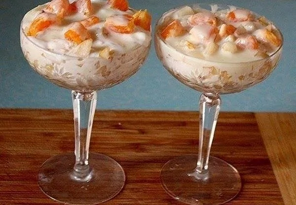 Слоеный фруктовый десерт с пломбиром и печеньем