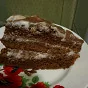ШАГ 9 Разрезаем бисквит на три части. Каждый слой промазываем сметанным кремом. На верхний слой вливаем тоненькой струйкой растопленый шоколад.