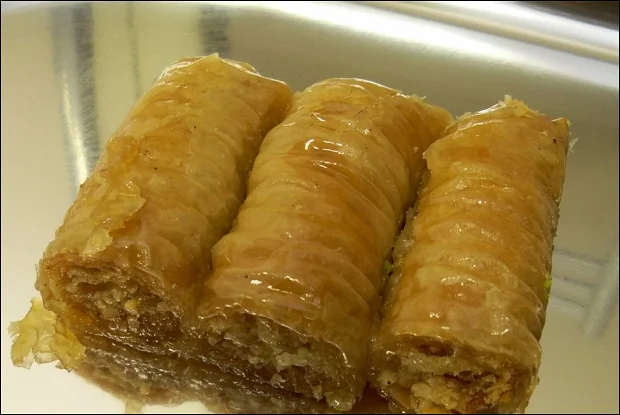 Пшеничная мука Куриное яйцо Молоко Соль Грецкие орехи Сахарная пудра Корица Сахар Вода Мед Выпечка и десерты Турецкая кухня Пахлава