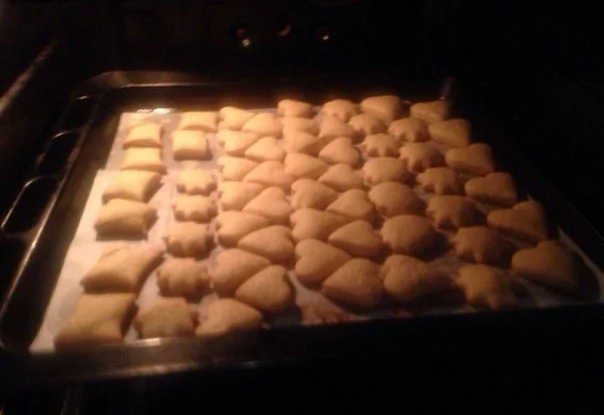 ШАГ 8 Раскатываем тесто толщиной 0,5-0,7 см и формируем печеньки (у меня были формочки)