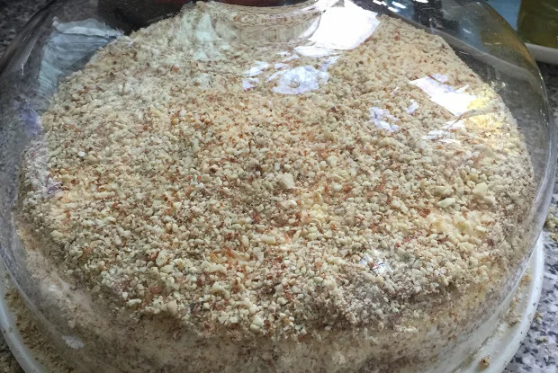 Почему-то в 60-е годы, когда с миндалем было туговато, прямо сказать, этот торт пользовался популярностью — я его с детства помню: и в приведённом, и в шоколадном варианте.