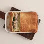 ШАГ 5 Второй пласт теста так же раскатать в такой же прямоугольник и накрыть начинку. Края пирога защипить. Дать пирогу расстояться в течение 15-20 минут.