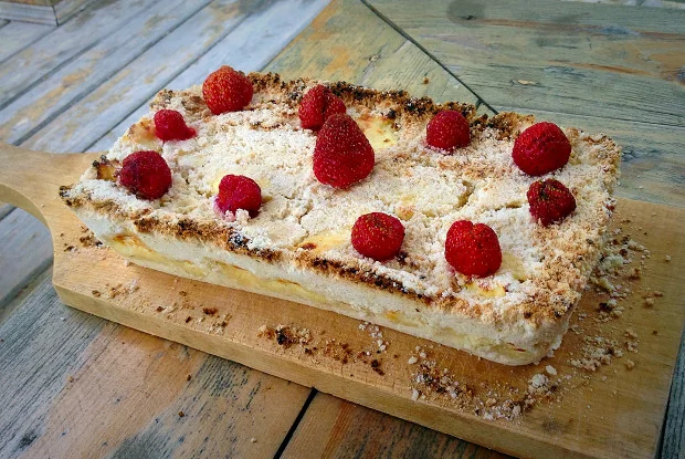 ШАГ 5 После того, как он остынет, украшаем клубникой.