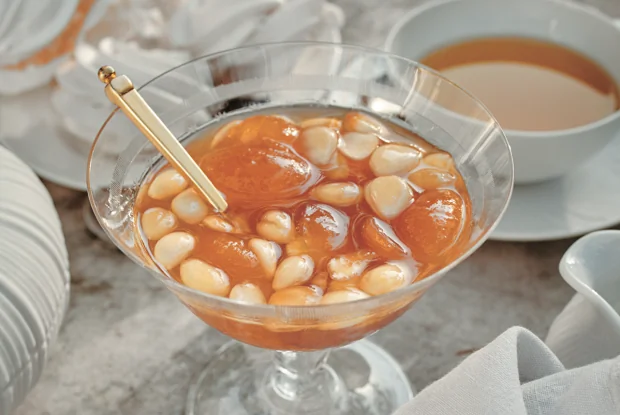 ШАГ 5 К абрикосовому варенью заварить терпкий иван-чай или сенчу, подавать творожные мини-ватрушки, безе с миндальным кремом или черемуховый торт.